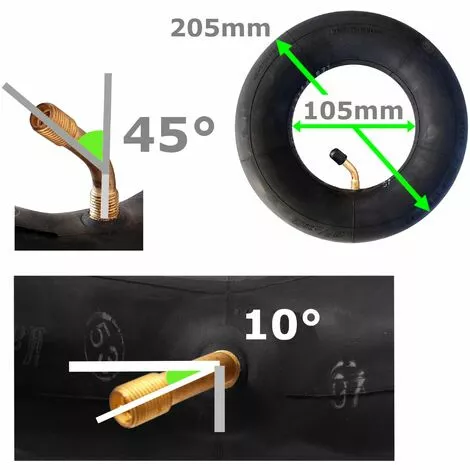 Chambre à air ; Dimension : 8 1/2×2″ (ETRTO 50-120) ; Facilité de gonflage grâce à la valve coudée Schrader (identique aux valves de voiture) ; Matériau optimisé afin d’assurer une bonne étanchéité ;