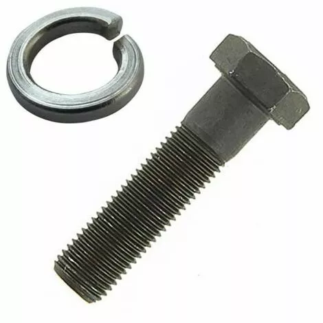 Vis de lame pour tondeuse avec rondelle frein Ø10mm ; Filetage 9.5mm 3/8″ 24UNF ; Longueur sous tête : 76mm ; Acier bruni ;