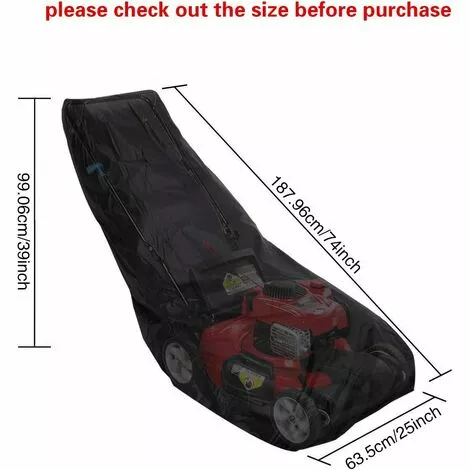 【Taille universelle】187.96 x 99.06 x 63.5 cm – Cette bache convient à la plupart des tondeuses. Remarque : mesurez la tondeuse à gazon avant de procéder à l’achat pour assurer une taille correcte et éviter les désagréments !