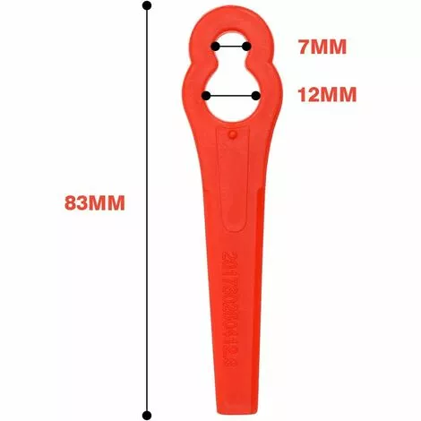 Quantité riche : 50 lames de tondeuse peuvent être utilisées pendant une longue période. Lames de tondeuse de 83 mm, grand trou 12 mm, petit trou 7 mm, rouge, convient à la plupart des tondeuses à gazon.