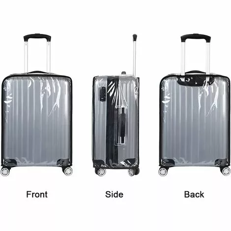 “Couleur comme indiquéTaille:29.5 x 22 x 3.2 cmPoids :230 grammesProtection des bagages: Couvertures de valise imperméable de voyage housse protection, fabriqué en PVC de haute qualité, imperméable et résistant aux températures élevées.Protège vos bagages des égratignures, de la poussière et de tout autre dommage superficiel.Couvre-bagages réutilisable et pliable, pratique pour le stockage.Pratique à installer: Avec trois velcro durables en bas, appuyez facilement, facile à installer et à enlever. Il suffit de placer le cache-bagages dans votre valise, puis d’appuyer sur le velcros en bas, l’étui protecteur s’adaptant parfaitement à votre valise.Très imperméable, ne sera pas mouillé les jours de pluie.Facile à identifier: Cover Couvre-bagages transparent, identifie vos bagages sans confusion,qui pourrait empêcher vos bagages de se perdre. Il est plus facile pour vous de trouver votre valise à l’aéroport ou ailleurs.Remarque: Assurez-vous que la poignée se trouve du côté droit du boîtier.Et notez que ce bagage ne convient que pour les bagages zippés.Si vos bagages sont faits de coquilles dures, veuillez commander une taille plus grande.”