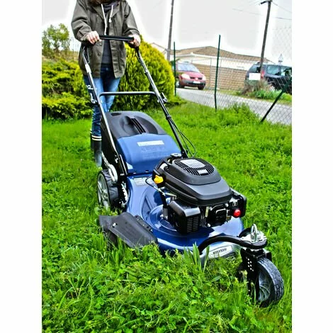 Avec une cylindrée de 196 cm3, la tondeuse thermique HTDT561RP-1 Hyundai réalise des performances très convaincantes sur les grands jardins.