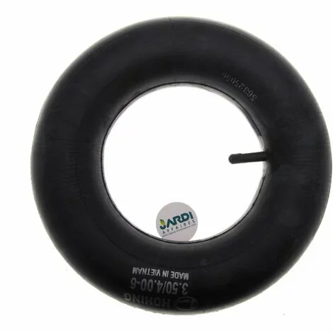 Chambre à air avec valve droite pour roues de tondeuse et autres appareils, dimensions 410/350-6, 350-6, 400-6. Modèle avec valve coudée également disponible en stock, autres dimensions de chambre à air et pneus en stock. ATTENTION : Merci de vous assurer de la dimension sur votre pneumatique avant de passer commande et de vérifier l’orientation de votre valve (les valves droites ne conviennent pas à tous les montages)