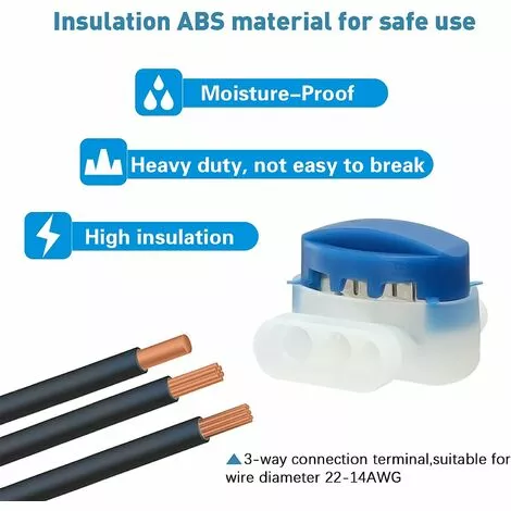 Couleur: Le connecteur de câble bleu et blanc convient à 2 ou 3 fils et à tous les câbles de 22AWG (0,64 mm) à 14AWG (2,05 mm)