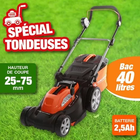 - Tondeuse électrique à batterie. Moteur 40 V sans Balais. Batterie 2,5 Ah.