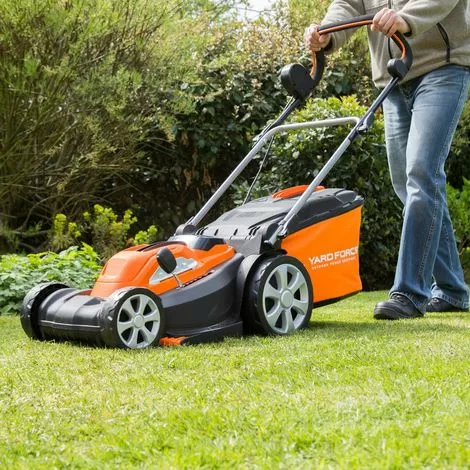 Tondeuse électrique sans fil à batterie, Moteur 40 V. Batterie 2,5 Ah – Largeur de coupe 37 cm, panier 40 litres.