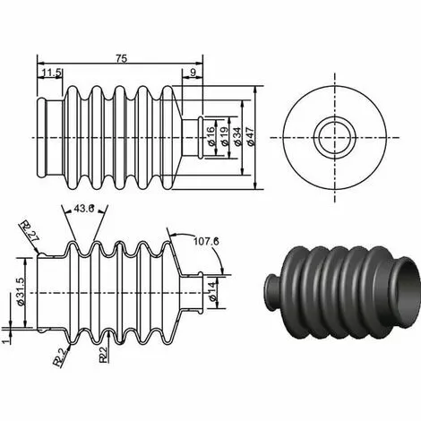 Domaine d’application : Manchette universelle en caoutchouc utilisée comme soufflet de levier de vitesse ou passage sur le plancher de cabine