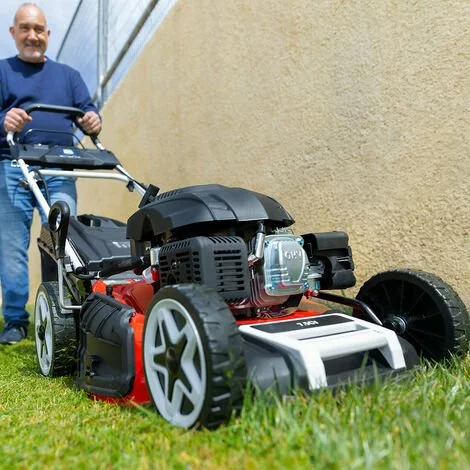 Elle est équipée d’un puissant moteur GREENCUT de 7,5 ch 218 cm3, refroidi par air, à soupapes en tête et à 4 temps, qui garantit un excellent résultat de coupe, ainsi que d’un système autopropulsé dynamique qui évite à l’utilisateur de devoir pousser la machine, puisqu’il suffit de l’accompagner. Il dispose également d’un démarreur électrique pour un démarrage rapide et facile.
